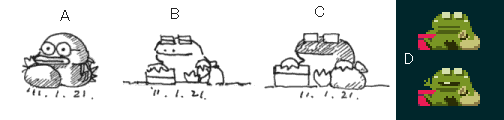 ほとんどのキャラはいきなりドット絵で描くのだけれど、今回は先にペンで描いてみた。