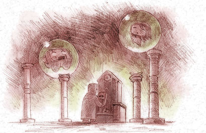 不気味な王冠を手にした男が、2人の従者の封印を解く。