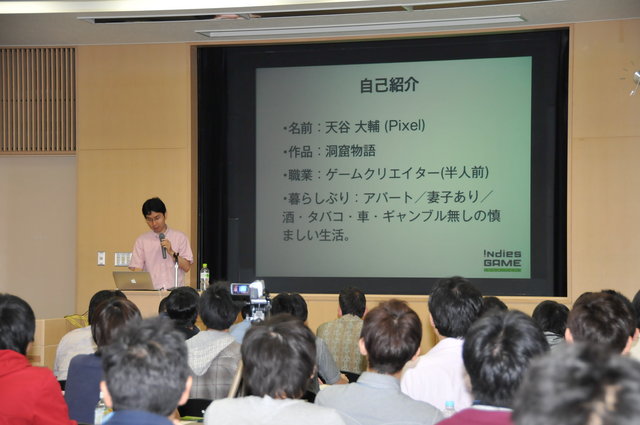 天谷氏といえば『洞窟物語』であり、ややもすると一攫千金を成した人物と思われがちですが、その実は多難だったのです。ゲーム専門学校に通ってみたり、体を壊して隔離病棟送りになったりと、水面下ではもがいていたことを告白。そうした辛酸を嘗めた結果、ひとまず趣味で製作する方針を選んだそうです。