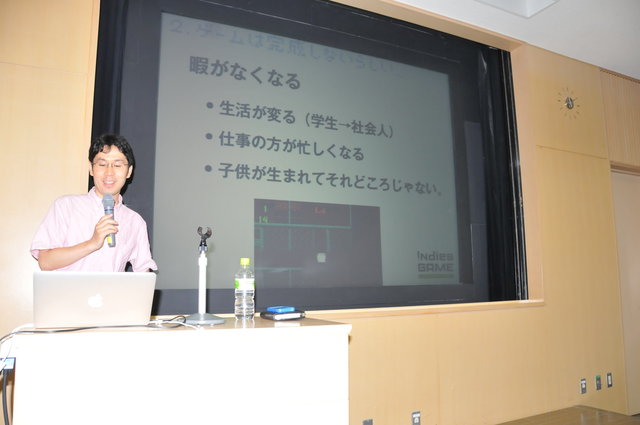 第3に"暇がなくなる"。こちらは「学生から社会人になり生活が変わる」「仕事のほうが忙しくなる」「子供が生まれてそれどころじゃなくなる」の3点。奥様の出産に際し担当の看護師から「終わりではなく始まりです」と伝えられた天谷氏は、この段階で製作していたRPGを放棄し、子育てに専念することになったそうです。こうしたことを踏まえ、「人生はどんどん変わっていきます。ですから、明日死んでもいいように創ってください。」と言い切った天谷氏の言葉は重みに満ちていました。