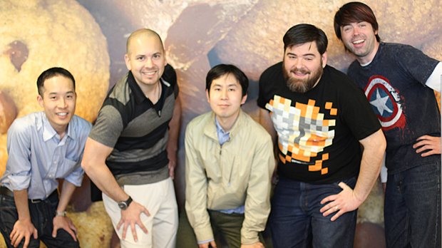 Above, from left: NIS America producer/interpreter Jack Niida, Tyrone Rodriguez, Daisuke Amaya, GR Senior Editor Mikel Reparaz and GR Executive Editor Brett Elston