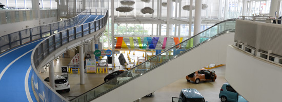 数えてみたら、お台場に足を運ぶのは実に10年振り。確かあの頃は、まだそんなに建物も無く、だだっ広い感じで、ネオジオランドなんかが健在だったと思う。随分建物が増えたなあと思いながら、お台場海浜公園より徒歩でパレットタウンへ。見覚えがあるような無いような、と思っていたら、ハッキリ記憶の残っている場所に辿り着いた。トヨタのショールームだ。一気にテンションが上がる。