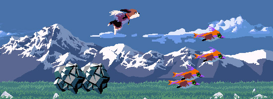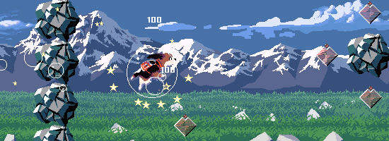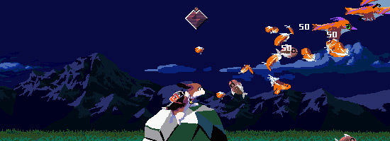 - 主人公の高度で奥行き視点が変わる超高速8重スクロール