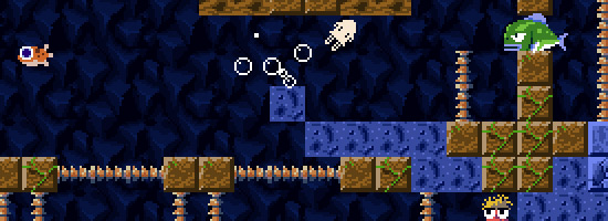 作り直すと聞いて、ここまで作ったものを捨てる気か、と本気で引いたβ版。マップも違えばストーリーも全然違う。イベントを見た方は気付いたと思うのだが、ボスからザコキャラに至るまで石鹸が溢れかえっている(他にも色々居るけど)。また、バルログの原型である『プー』は、リリースされている洞窟物語にも『プー・ブラック』として出演している。
