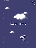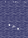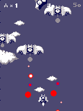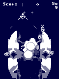 2005/11/23![]() | Made clouds appear at random in the background and added a boost effect to the ship. I wanted to add a sense of speed. The colors look like a Game Boy. |