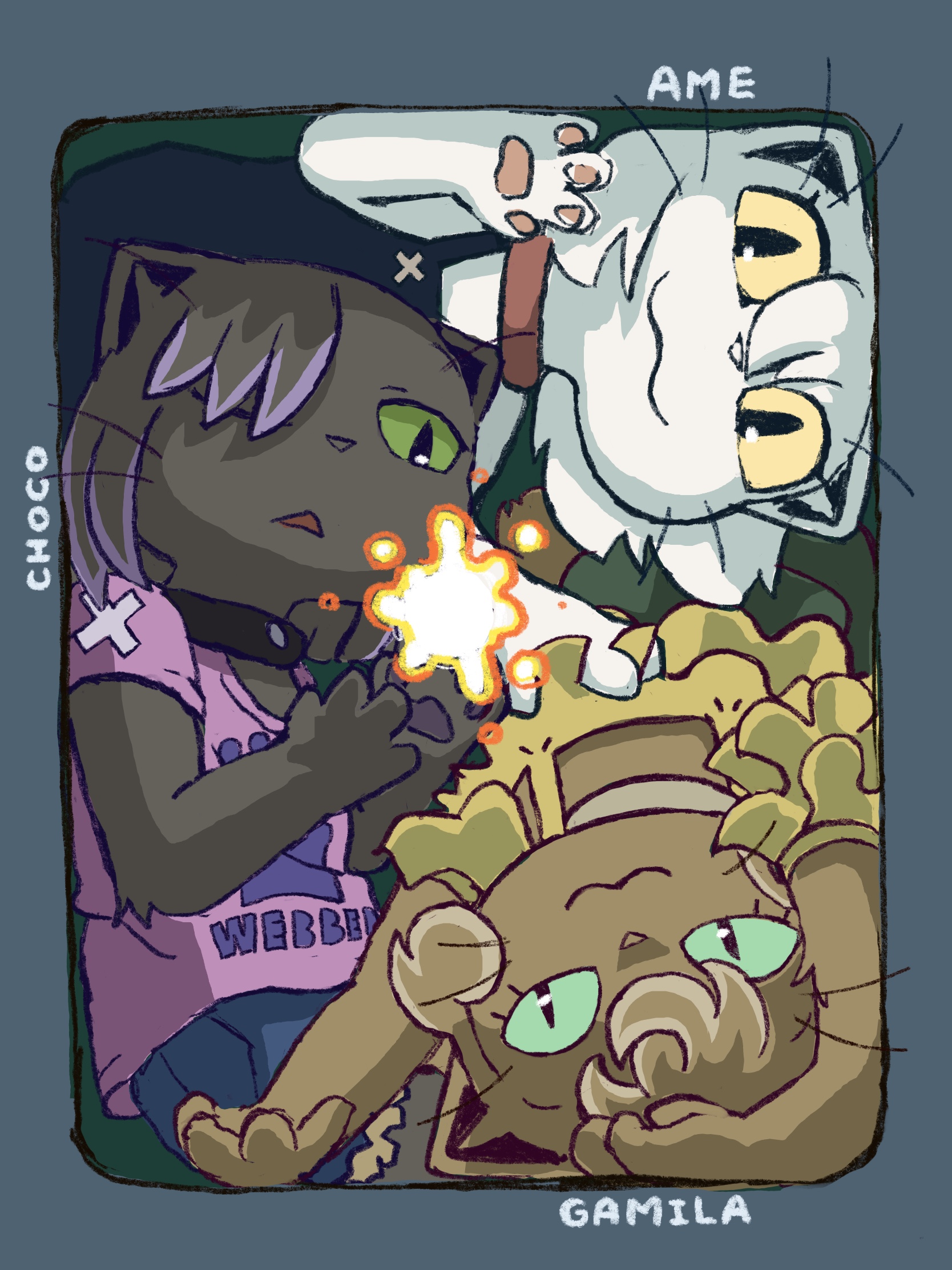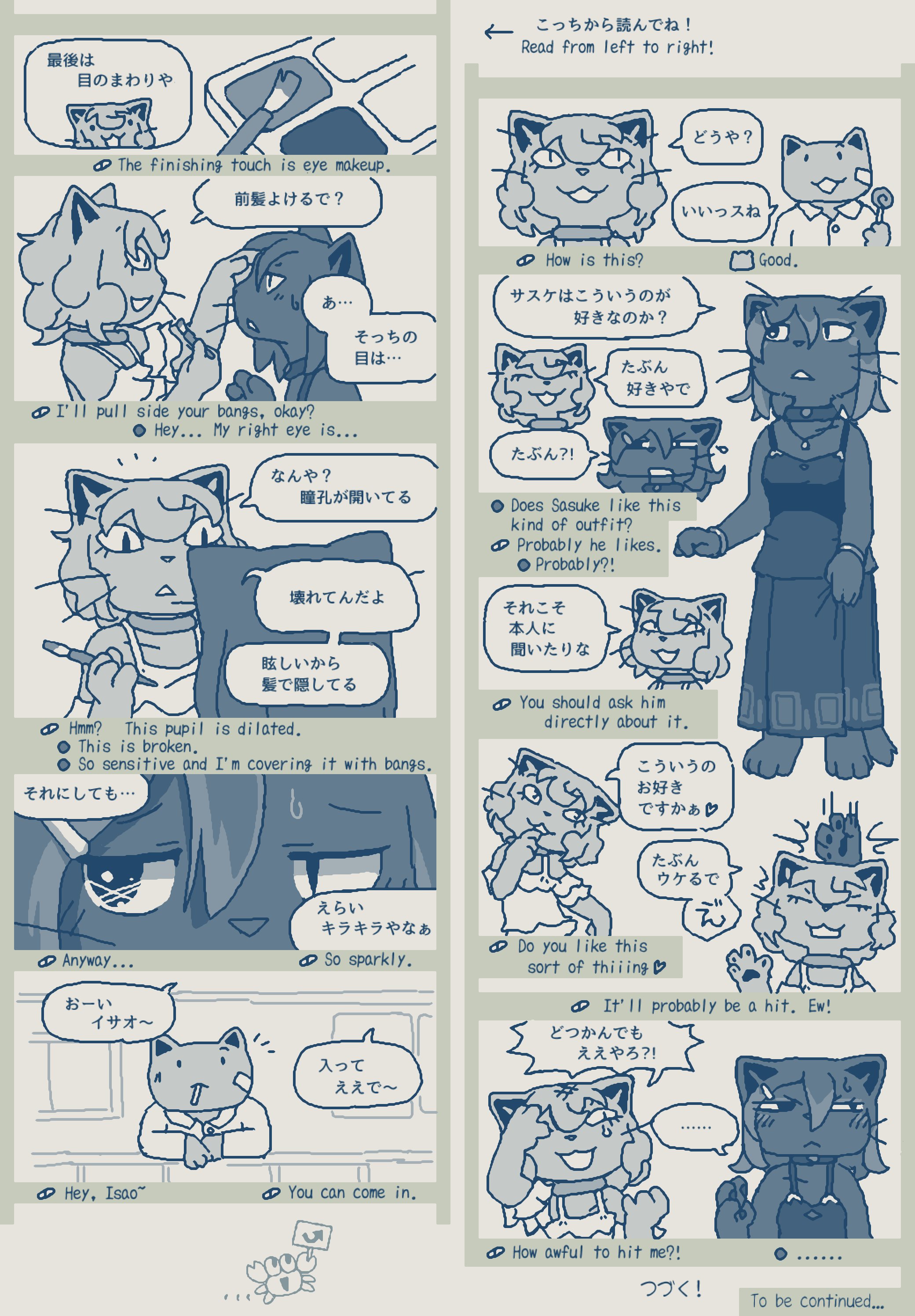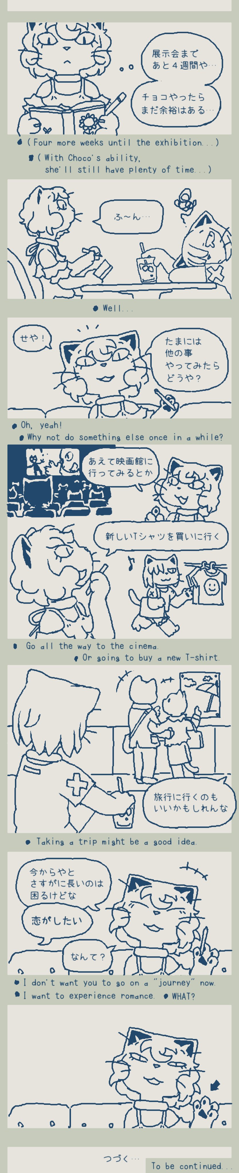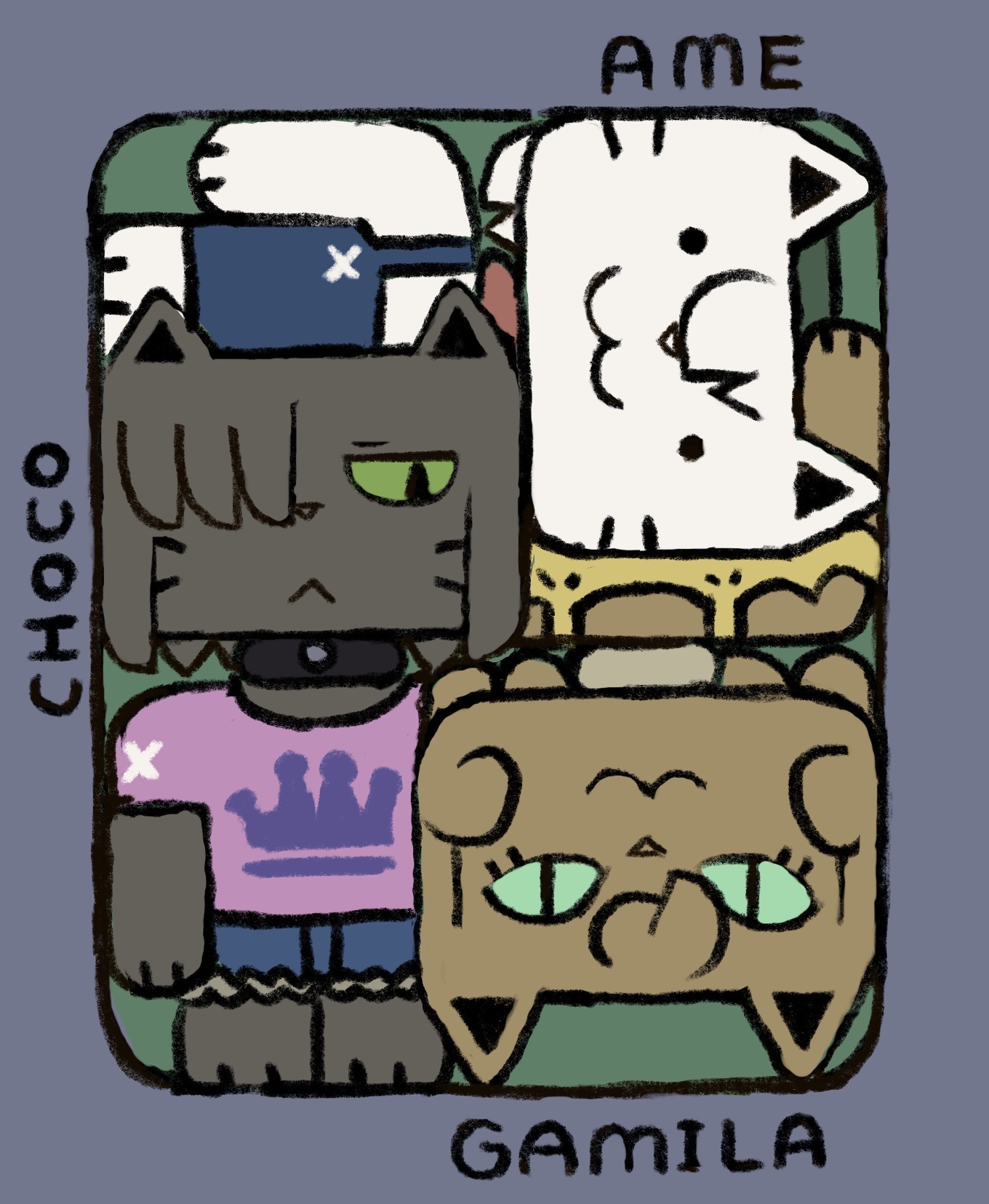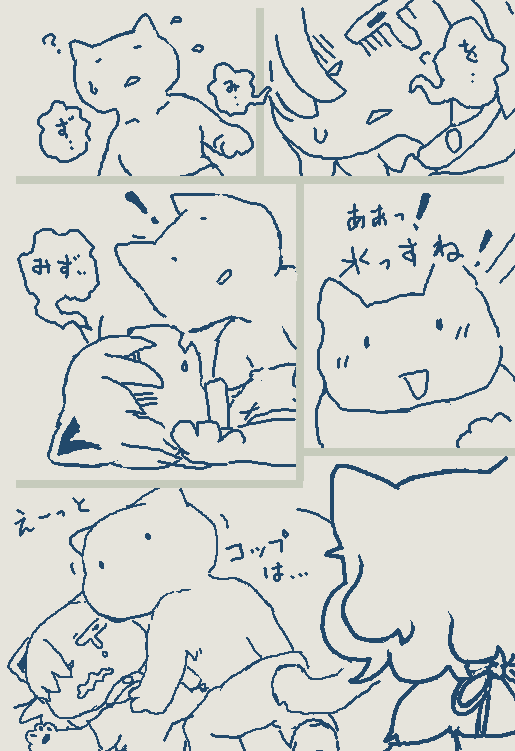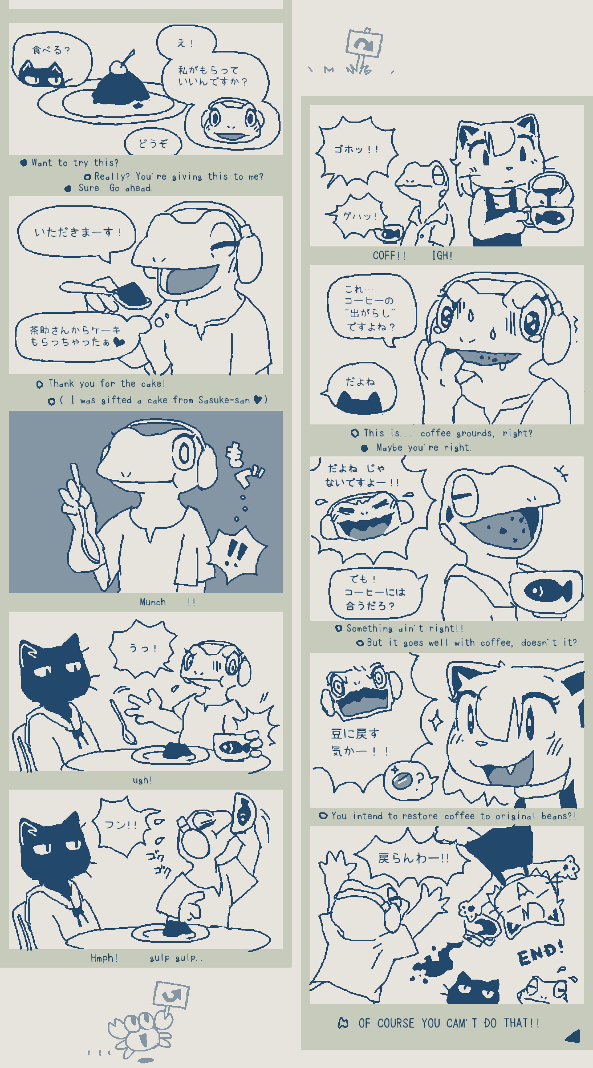 Updated my siteâš I forgot to draw Isaoâs bandage (from when Choco kicked his face during brushing) and Gamilaâs whiskers, so Iâve added them back in. https://studiopixel.jp/amechoga/