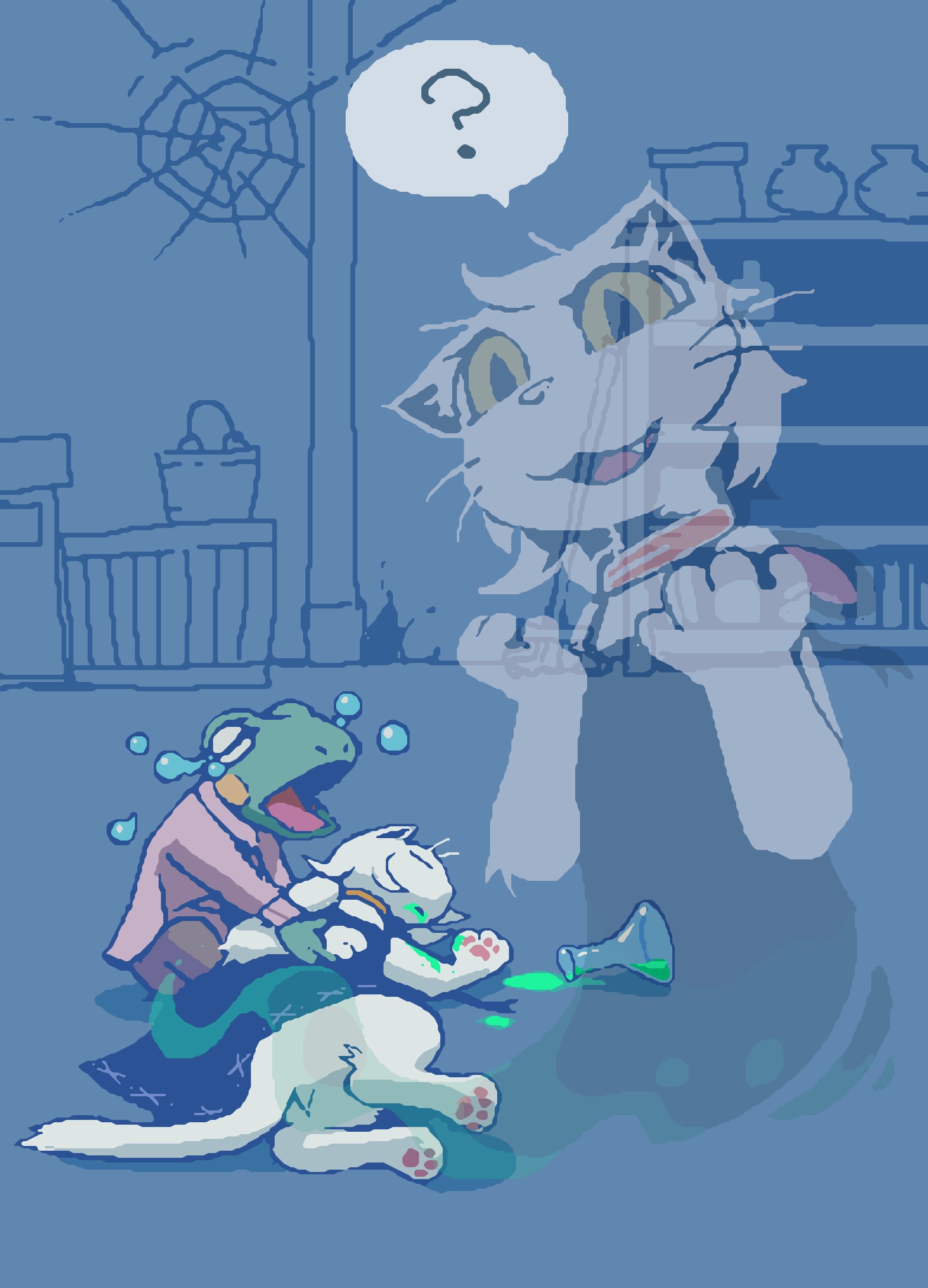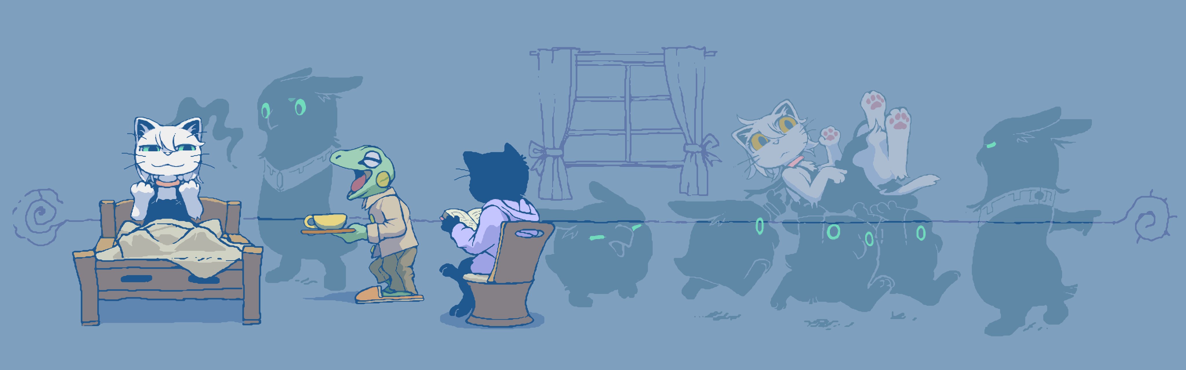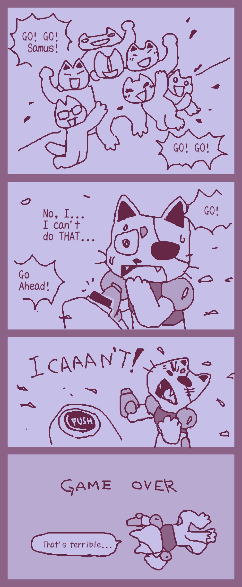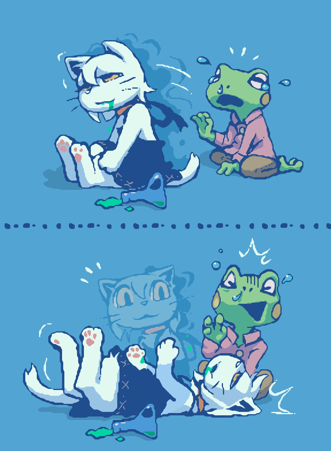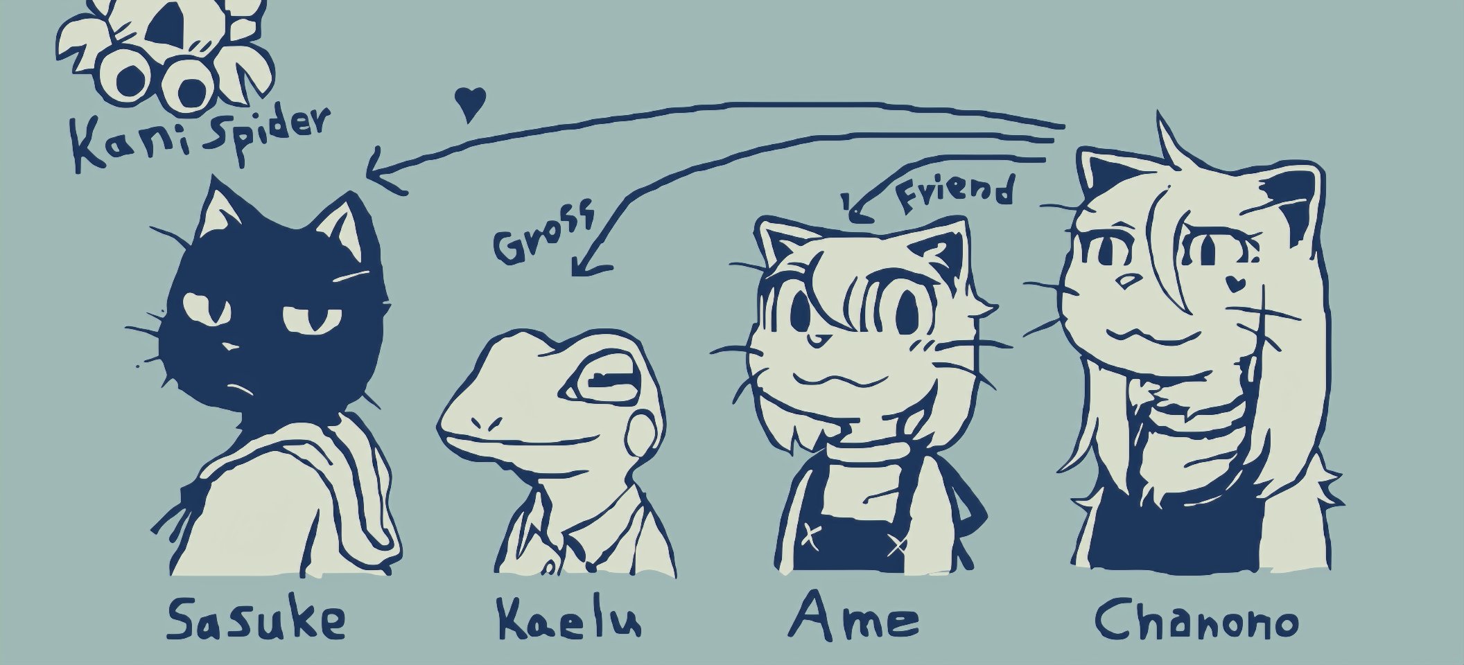 Updated my siteâš I forgot to draw Isaoâs bandage (from when Choco kicked his face during brushing) and Gamilaâs whiskers, so Iâve added them back in. https://studiopixel.jp/amechoga/