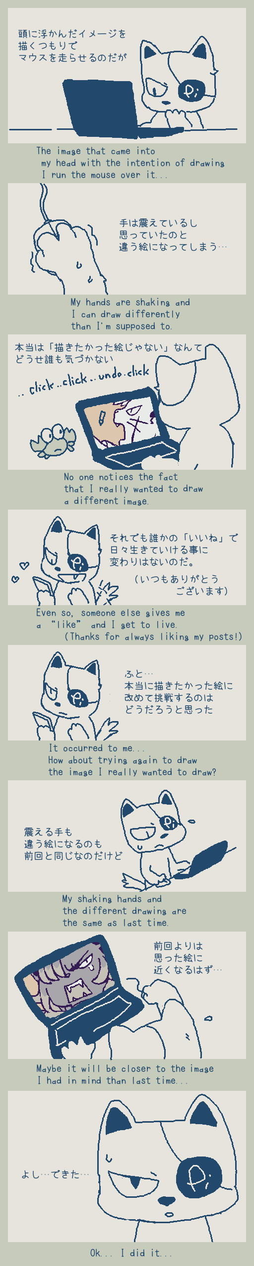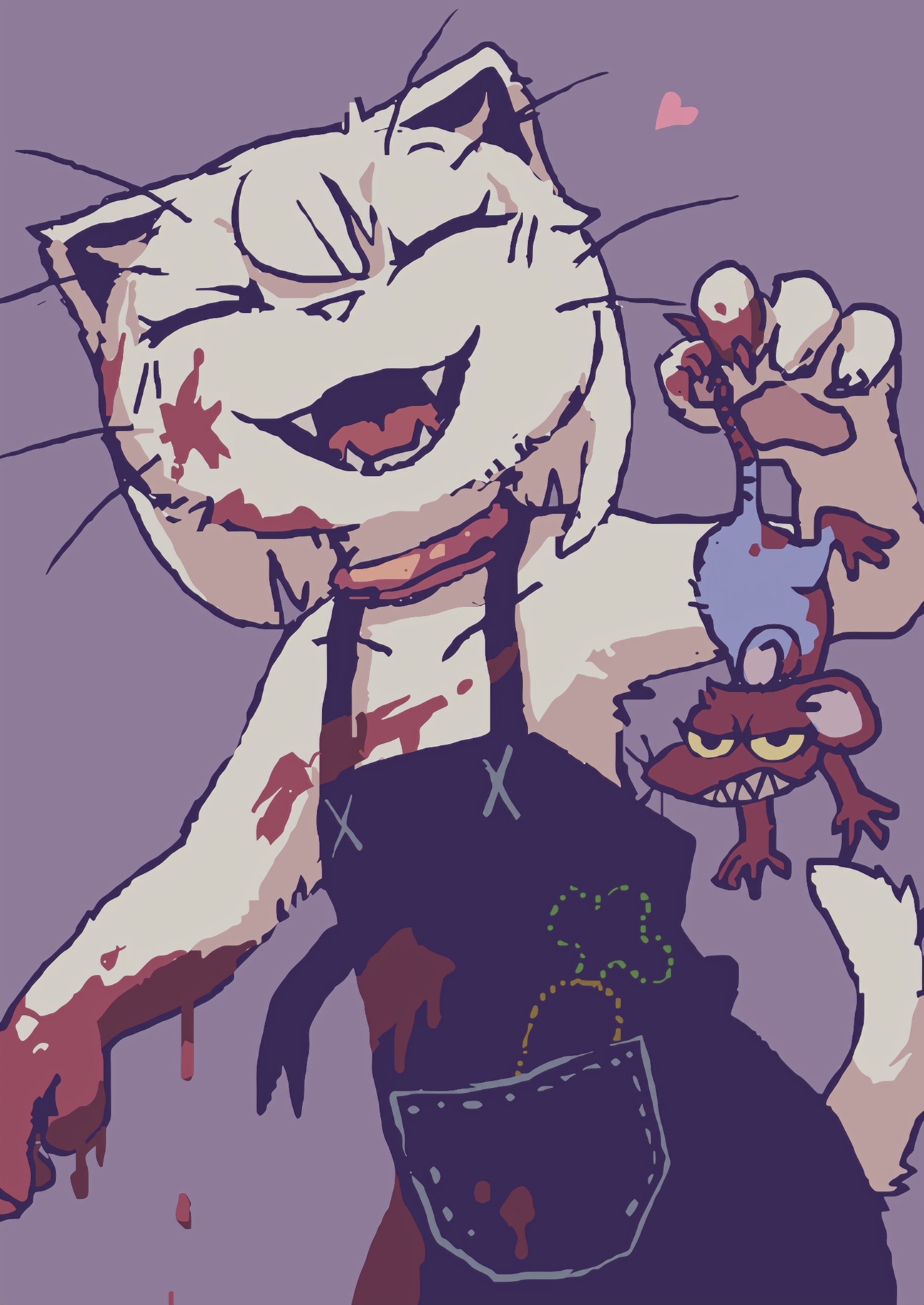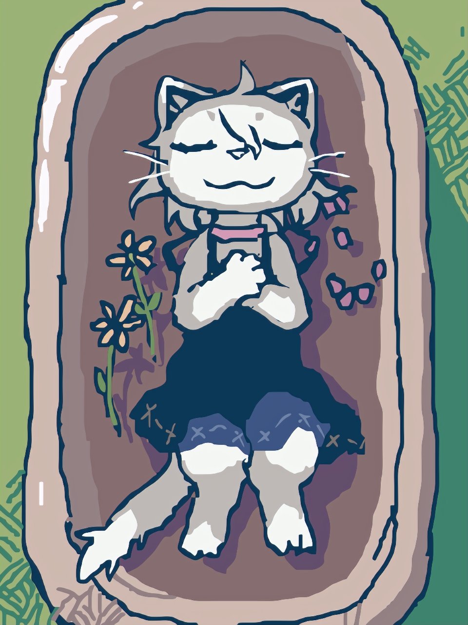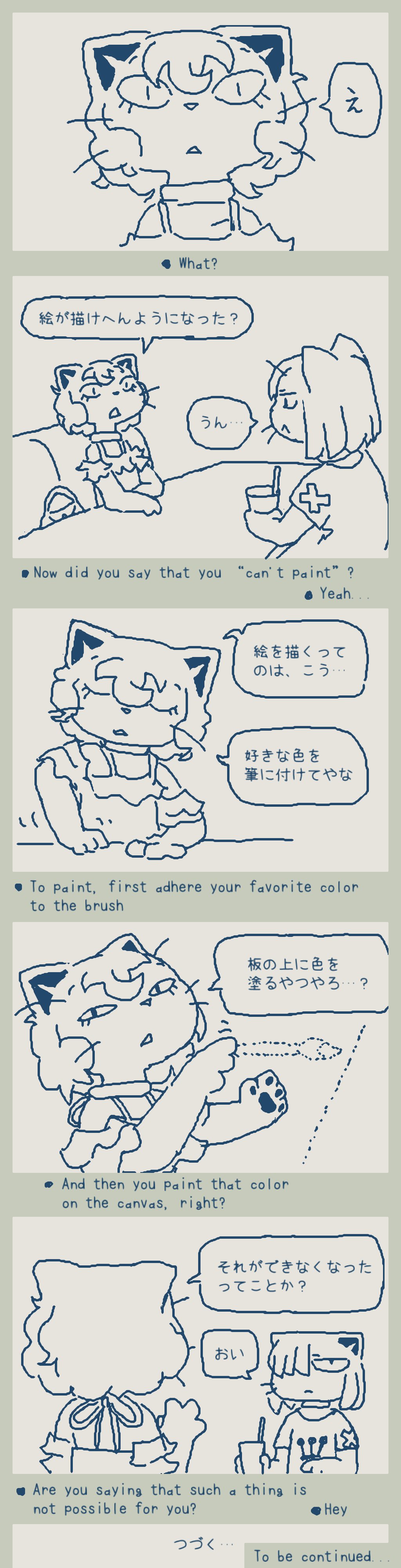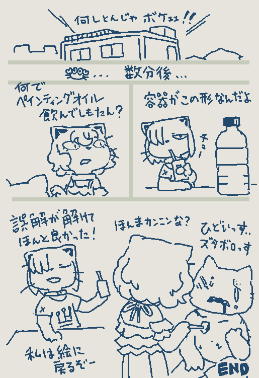 1. I'm sorry that I made you feel bad with my drawing. 2. No matter what anyone says, the cat is not dead. Please rest assured. 3. Please wait for me to post something that you like or block me.