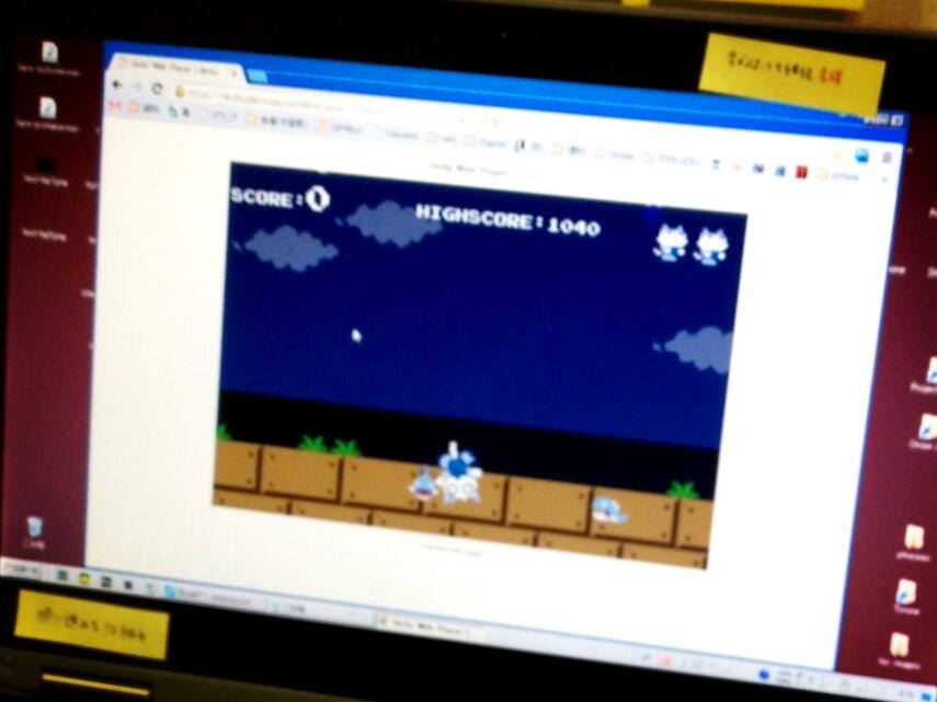 インディーゲームUnityセミナーの1時間のライブコーディング風プレゼンで、Unityからお越しの方に2Dのドット絵ゲームに挑戦していただきました。僕は事前に絵と音を準備。ちゃんとゲームとして遊べるものができてよかった(^ ^