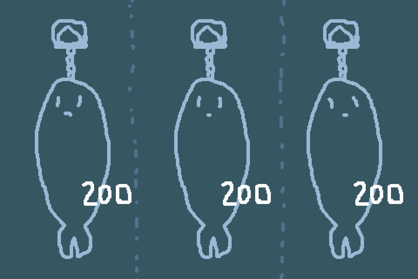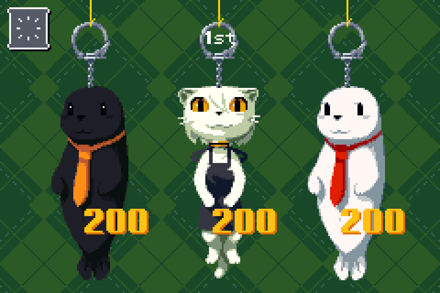 🦭ランダムで落下するアザラシのキーホルダーをダーツで救うゲームの下描き(左)と完成(右)。ポテトチップス一袋分は楽しめると思って120円。🙇♂️iPhone専用です
