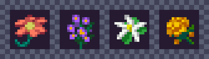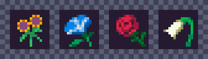 ゲームのために花を描いた。ヒマワリ、アサガオ、バラ、ラッパ。 #gamedev