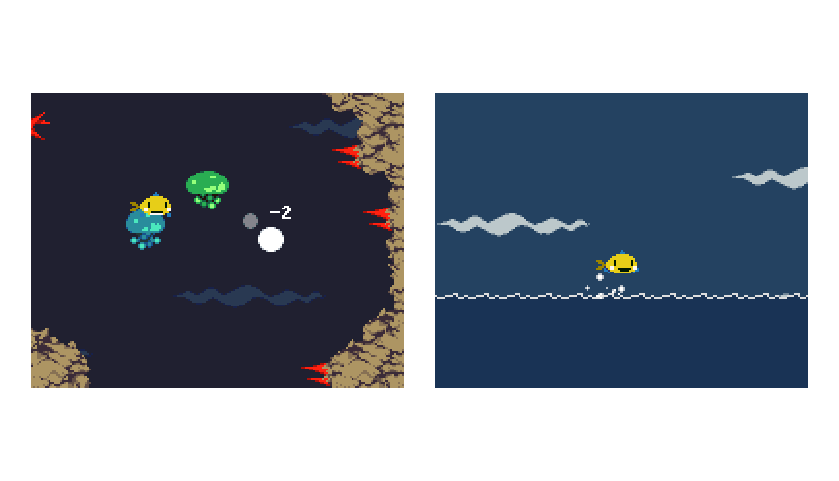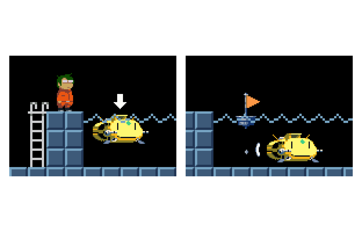 クラゲをやっつける・水面より上へジャンプ!