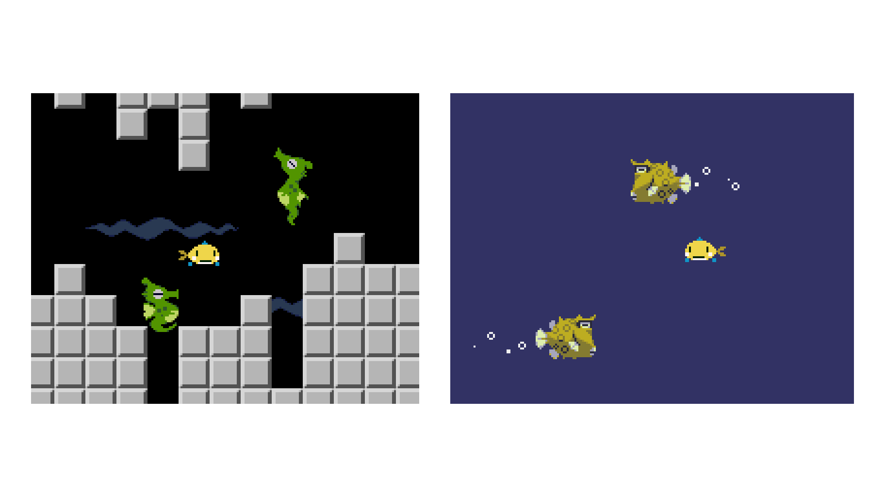 垂直に移動するタツノオトシゴ vs 水平に移動するハコフグ #gamedev #ゲーム制作