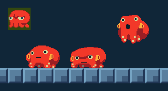 大きなタコ🐙(ボス用)。屈伸からのジャンプめっちゃ描いてきたしこれからも描きそう…🙄 #gamedev #ゲーム制作