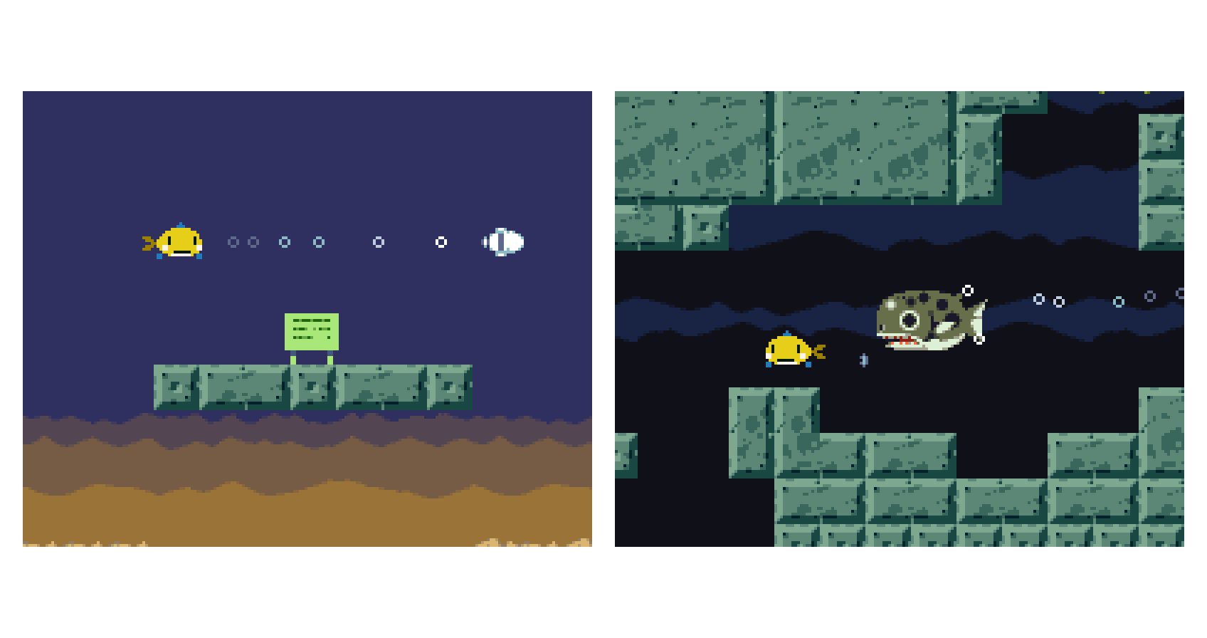 🐟サカナが主人公のゲームを作ろうとしていたのにや潜水艦ぽいのになる。そしてカワイイやつになる🐥