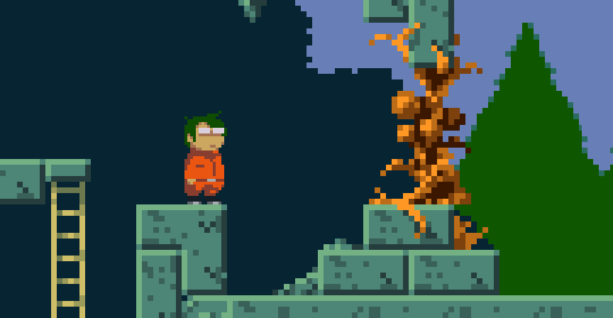 向こう側からしか壊せないギミック。破壊できれば近道になる。 #gamedev #ゲーム制作