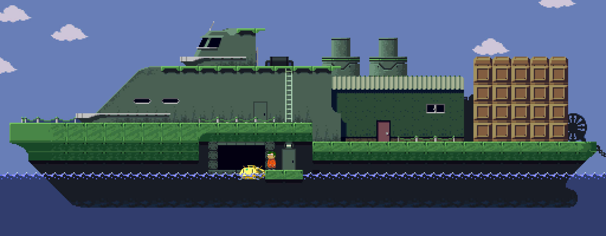 冒険の拠点になる船。シャワー・キッチン・ベッド完備。 #gamedev #ゲーム制作