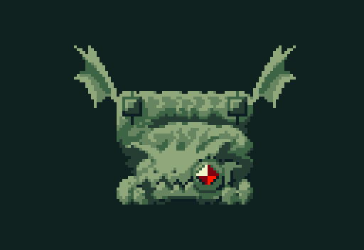 宝石の目玉を外すと暴れだす石像。当たり判定の都合で大きいキャラほど露骨に四角い🥴 #gamedev #ゲーム制作