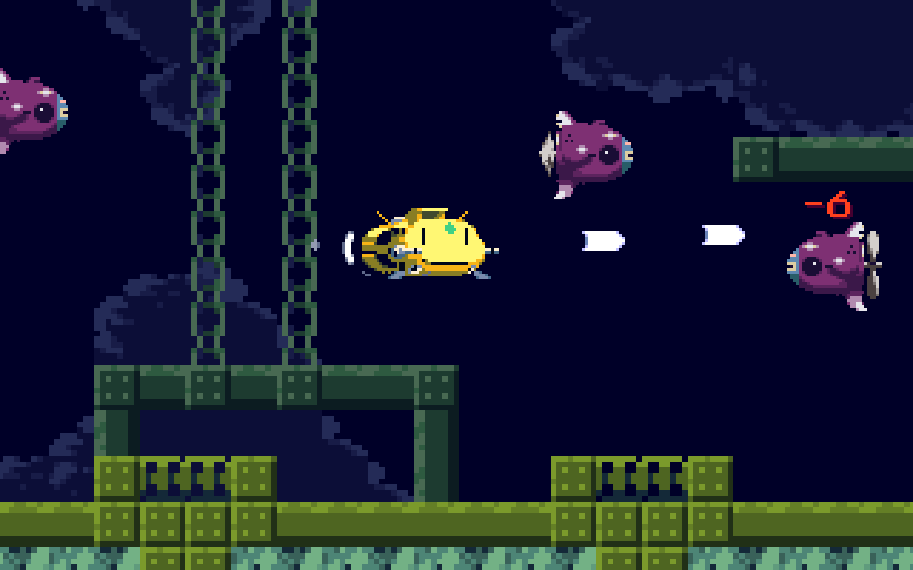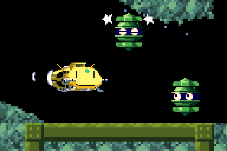 当り判定の都合で敵が矩形だったり、画像の量を減らすために小さな翼を付けたり、自分がやりがちな事って多い..似てない似てないって言い聞かせながら動かしてみたけど、似てるわなぁ..何かに..
