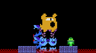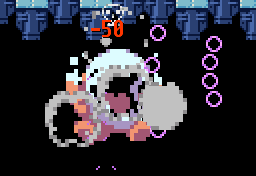 氷山の中ボスと戦う。撃破。そして中ボスが吐き出したお店のシンボル…🙃 #StarFrog #開発中止