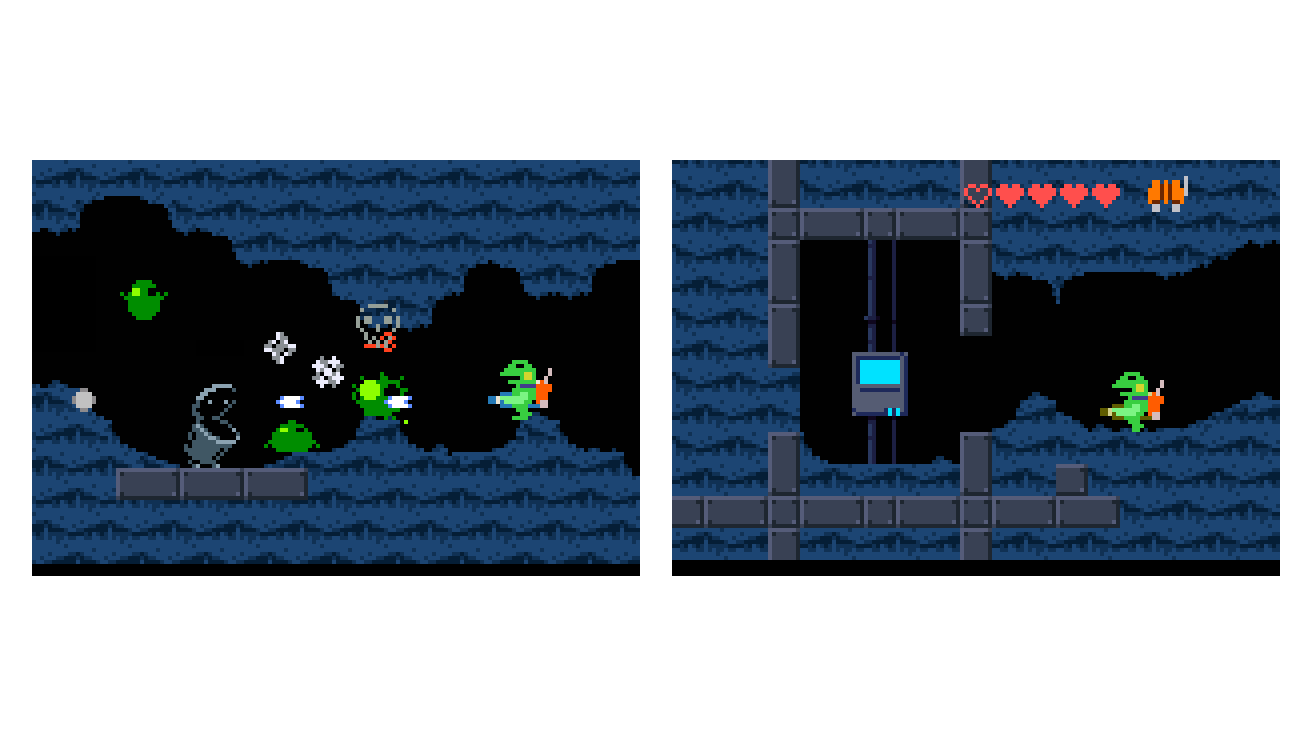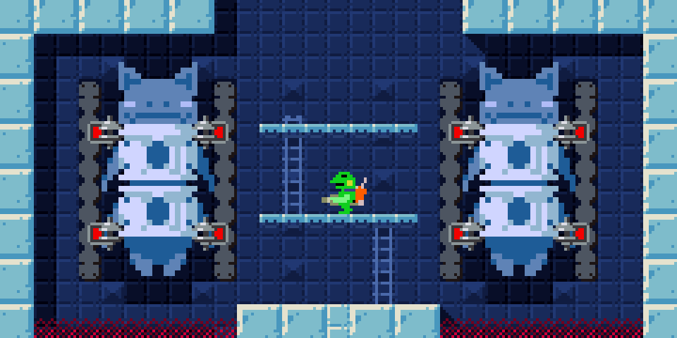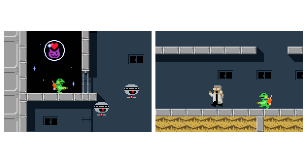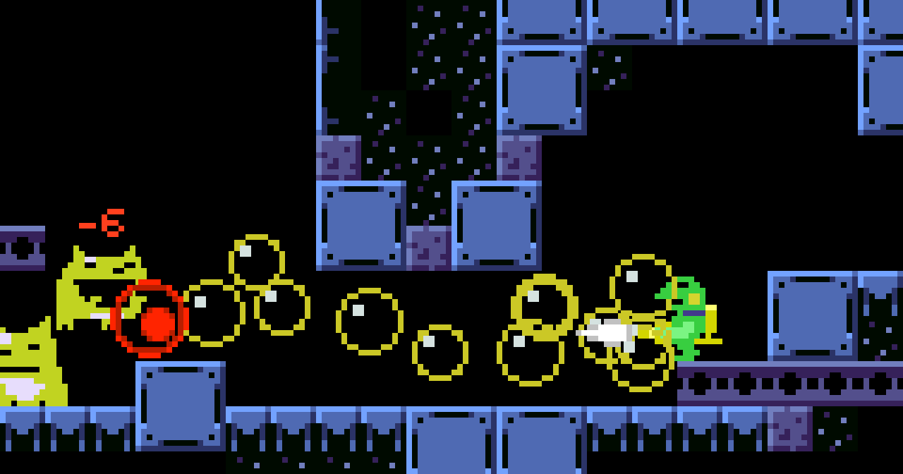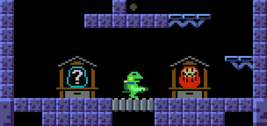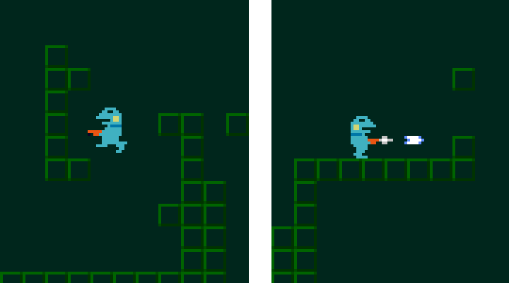 どこかにある2つのダルマをそろえて道を開くミッション。 #gamedev #discontinued 注:ケロブラスターの前身「スターフロッグ(未完成)」のものです。