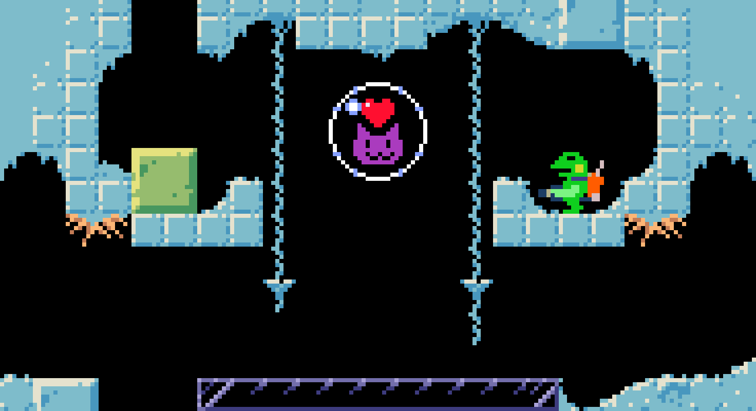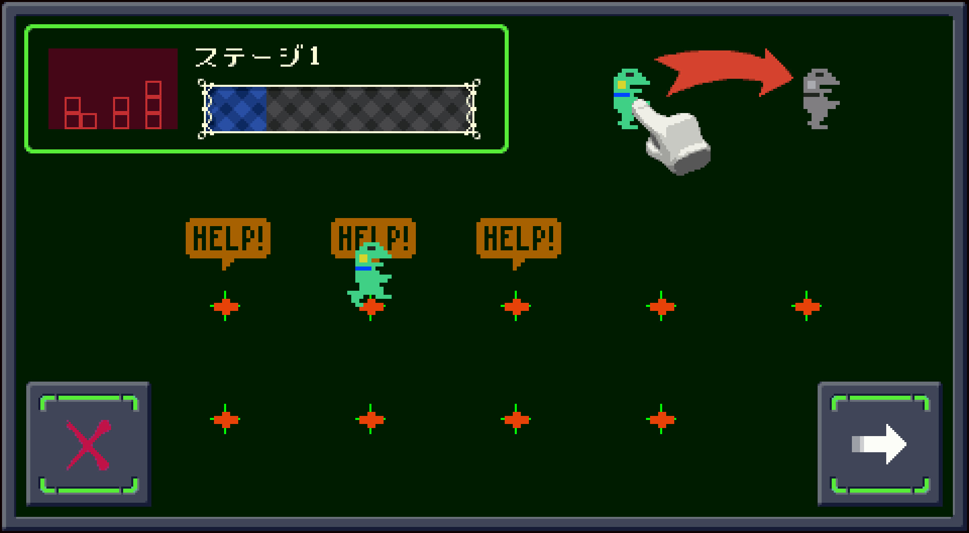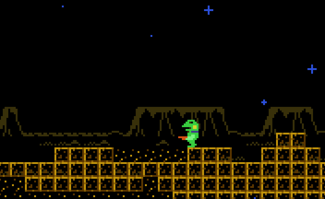 どこかにある2つのダルマをそろえて道を開くミッション。 #gamedev #discontinued 注:ケロブラスターの前身「スターフロッグ(未完成)」のものです。