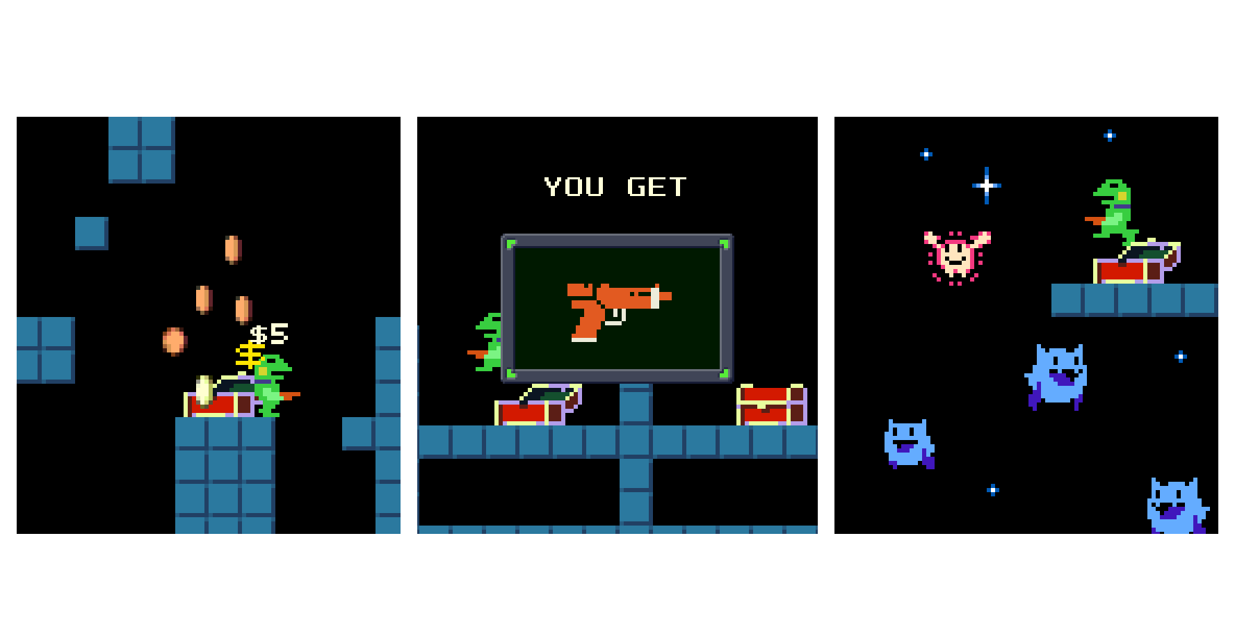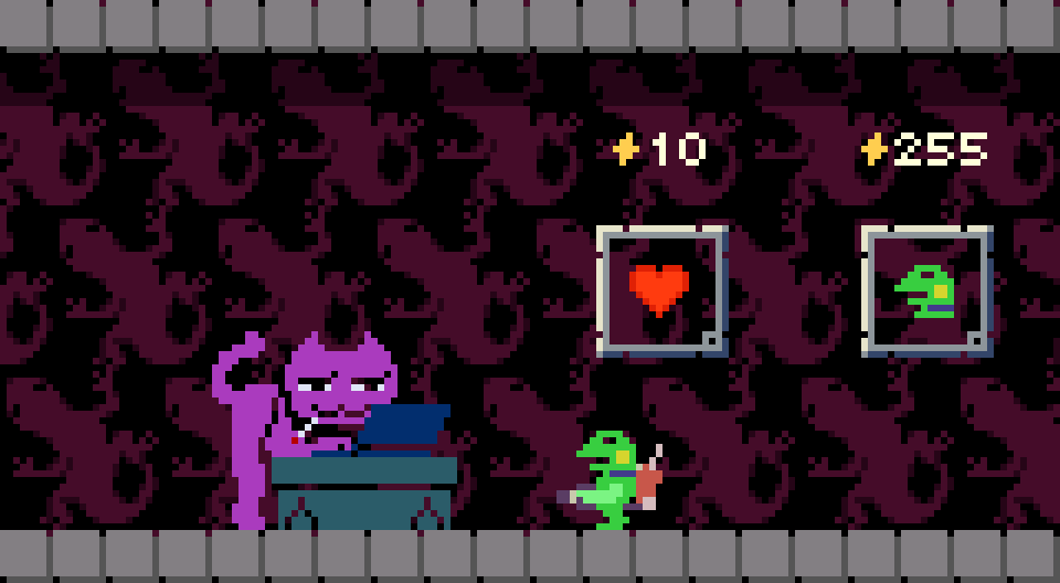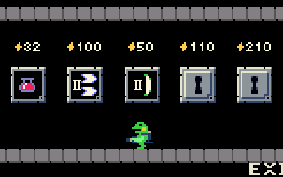 🎁欲しいアイテムが入った箱を頭突すると購入できる。💰もちろんお金が足りないとエラーが鳴る。🔫ロックされているアイテムも中身が見えた方がプレイヤーのモチベに寄与できる? #gamedev #discontinued