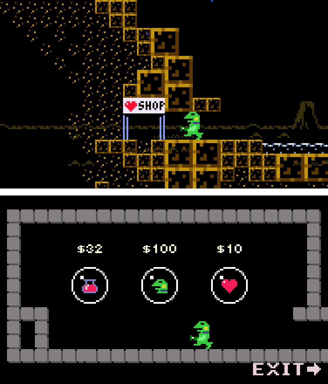 🏪初期のお店の入り口 & 初期の店内。 💰アクションゲームなので買い物もジャンプで行うのが良いと思った。#gamedev