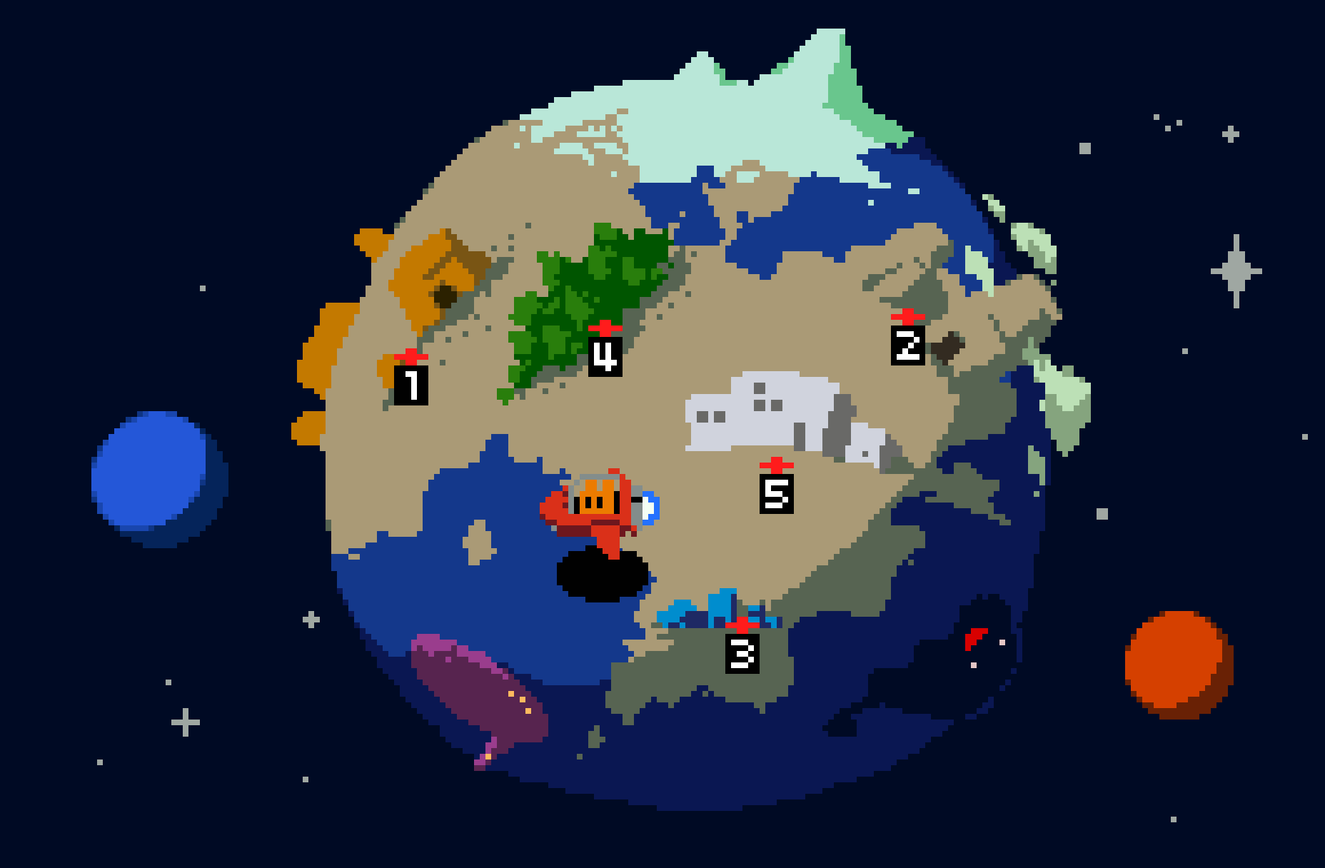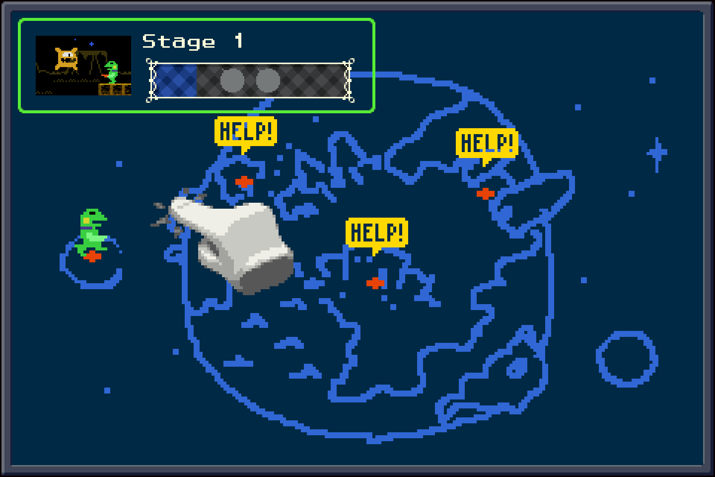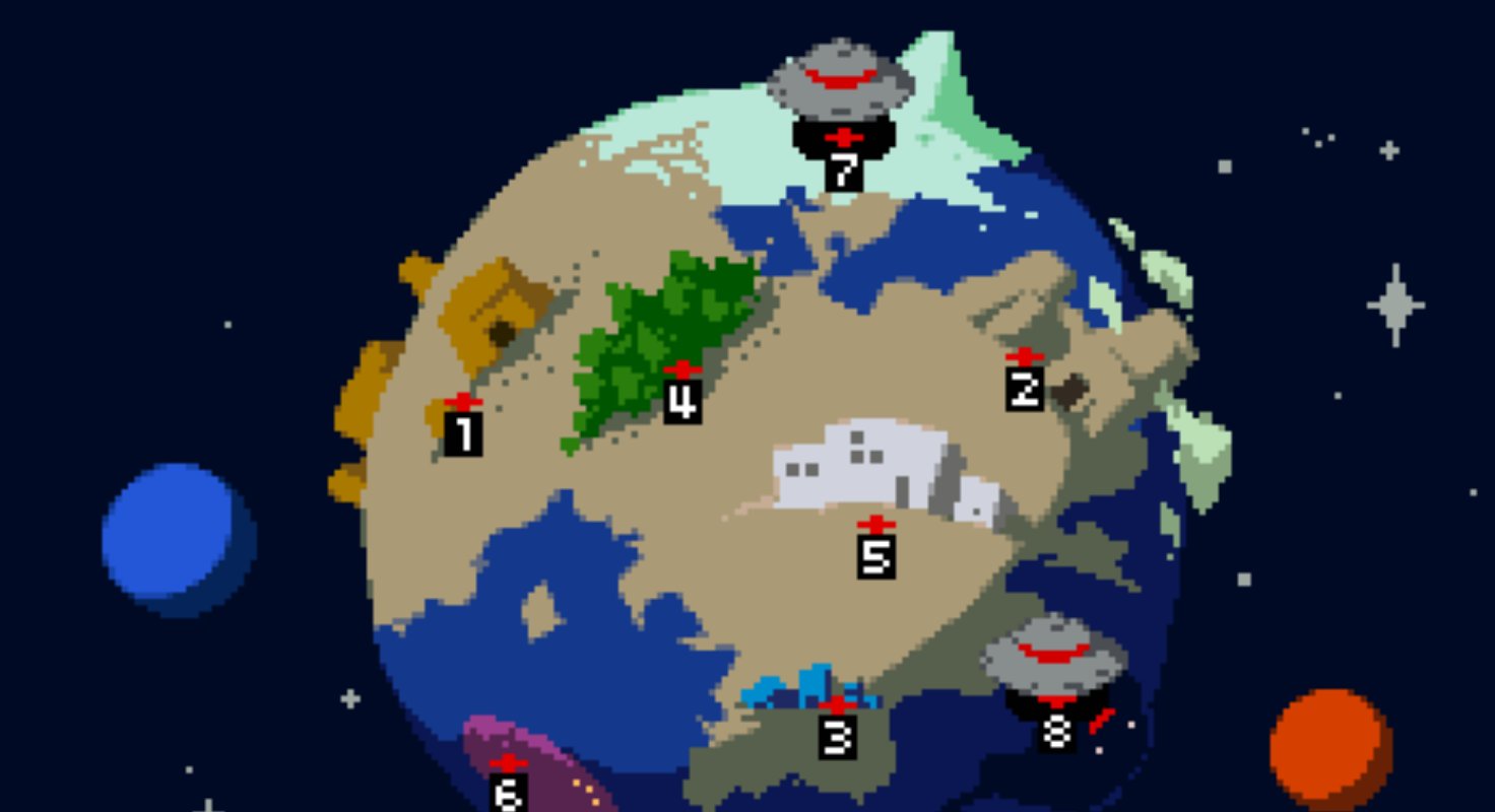 🌏ワールド全体マップ。まずは救難信号のある3か所から選ぶ。囚われの🐱はどこに? #gamedev