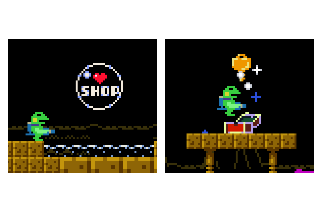 ゲーム全編通して重要なお店まわりの動きとかビジュアルを改良中。 #GeroBlaster