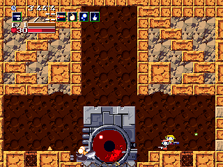 縦穴の途中に武器エネルギーカプセル、これも上と同様ミサイルもしくはスネークにつぎ込む。カプセルに重なる寸前に攻撃を撃ち込むようにして取る。