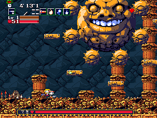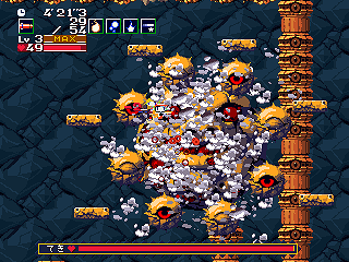 1 ポーラスター 制限プレイをする以外に、この武器を使用する利点は全くない。 マシンガン レベル3での武器の反動浮遊能力も、ブースターがあるため不必要。 スネーク 壁貫通能力のため、最速を出すために必須の武器となる。ミサイルを持ってないならこれのレベルを上げる。 シュプール もともとレベル1なので初めから使い勝手が良い。クリアするためには有効だが、タイムアタックにおいてはスネークには敵わない。 2 ミサイル 一応一覧に入れてあるだけ。スーパーミサイルの方がいいのは書くまでもないこと。 スーパーミサイル やっぱり頼りになる威力の高さ。とにかく最優先で武器レベルを最大にする必要がある。 ミサイル無し この場合、第3階層の宝箱で弾数100発のミサイルが手に入るが、入手時レベル1であることを考えると取る必要は無い。 3 ブレード レベル1での威力の高さが魅力的なので、武器レベルを上げる必要は無い。タイムアタックには有効だが、クリアを目指すならネメシスの方が良いと思う。 ネメシス シュプール同様、武器レベルを上げる必要が無いのが強み。クリア、タイムアタックのどちらでも有効。 4 ファイアボール クリアにもタイムアタックにも必要無し。武器選択の時に邪魔な程度の能力を持つ武器。スネークを作成すれば無くなるのが有効… 5 バブリン 所持している意味が無い。レベル最大なら使えるのかもしれないが、わざわざ上げるまでもない。聖域タイムアタックをするのなら、この武器を持っていないデータを作るべき。