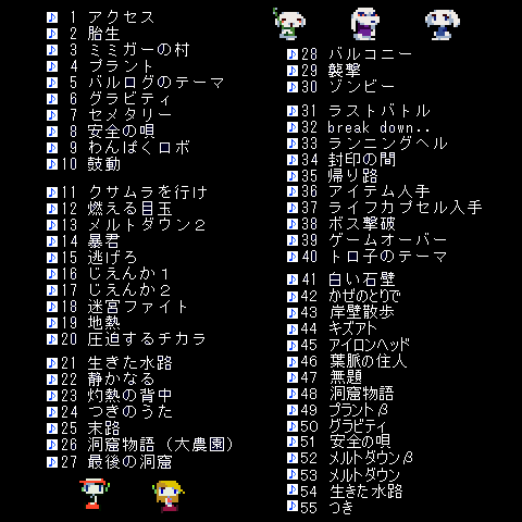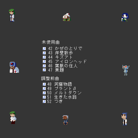 洞窟物語のゲーム本編では使用されず、オルガーニャビューにも収録されていない幻の曲たち。